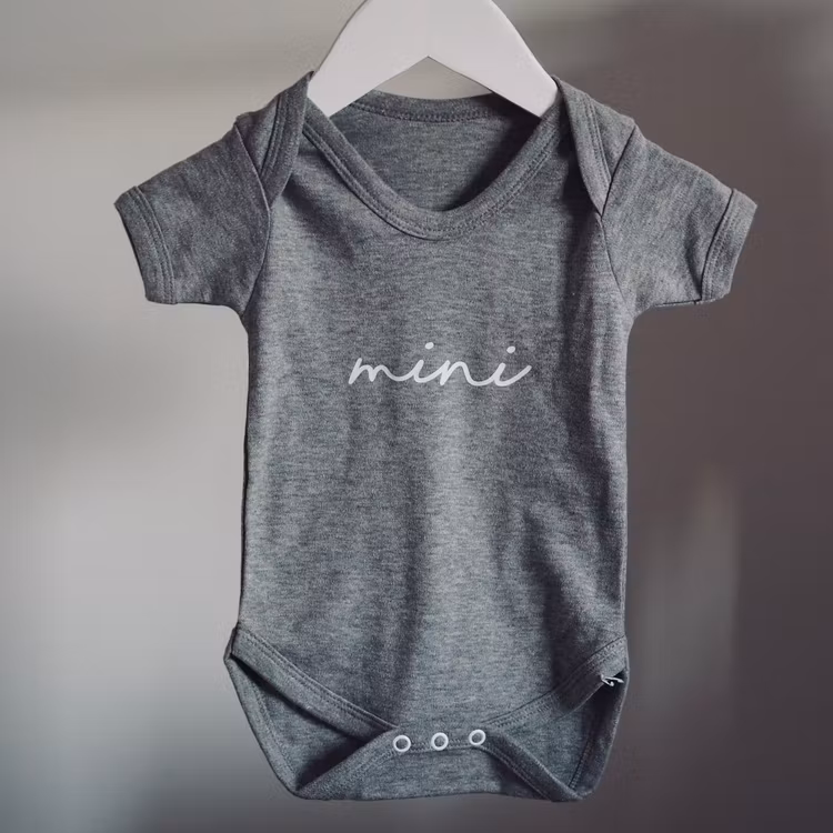 Ge din lilla en unik och personlig touch med vår kortärmade grå body med personligt tryck. Denna body är inte bara supermjuk och bekväm, utan också praktisk med tre knappar för enkel på- och avtagning. Tillverkad i 100% bomull är den skonsam mot barnets känsliga hud och lätt att tvätta. Ett perfekt val för både vardagsbruk och som en omtänksam present.