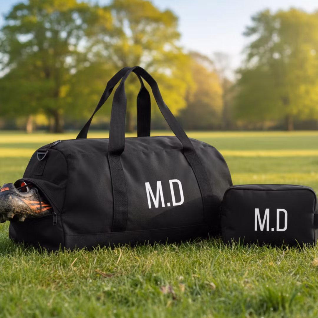 En komplett lösning för träning, match och cuper – här får du både en rymlig fotbollsväska med plats för skor och en praktisk necessär med namn som håller ordning på det lilla extra.